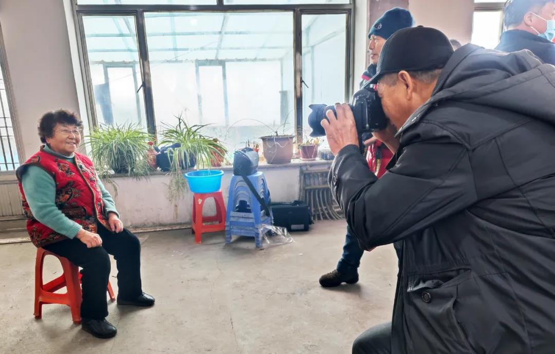 1月15日,文化志愿服务摄影家小分队在漂河镇四道沟村为村民拍摄全家福打印照片