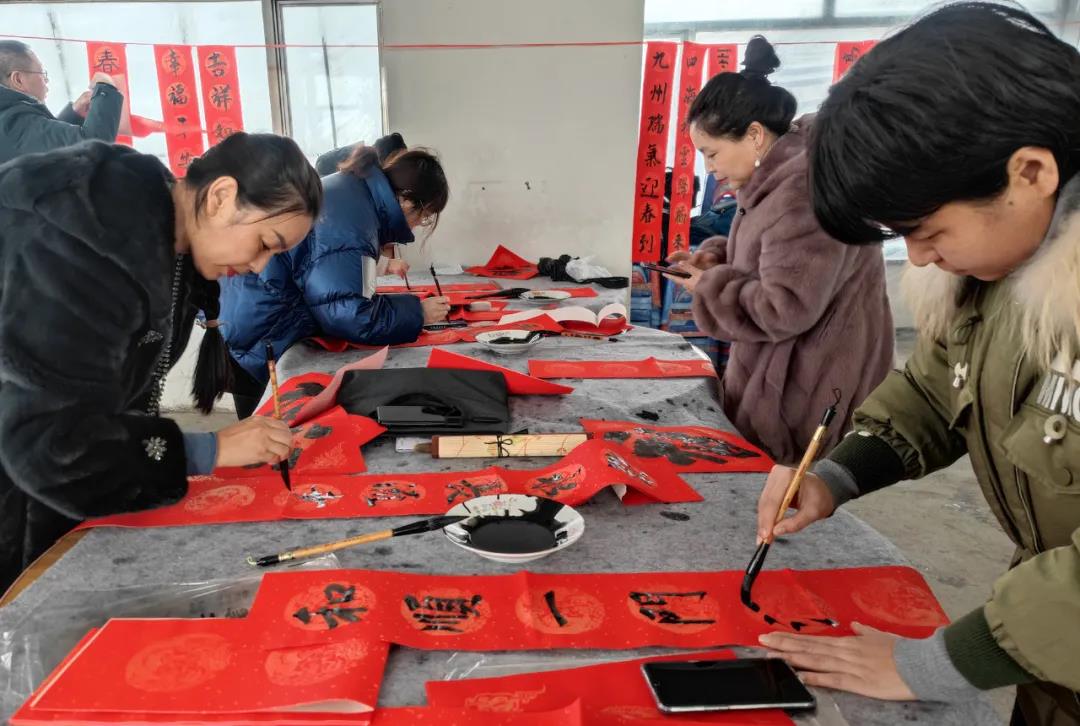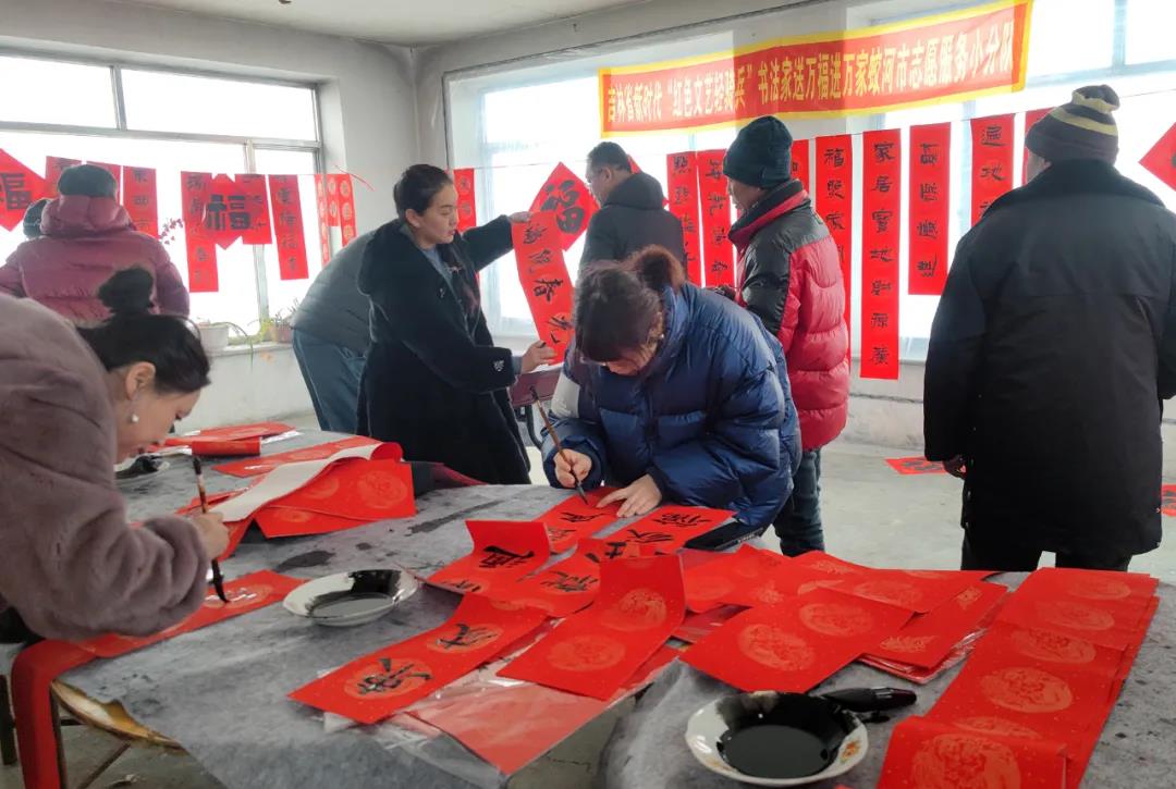 1月14日,文化惠农志愿服务书法家小分队到黄松甸镇黄松甸村为村民现场写春联送福字