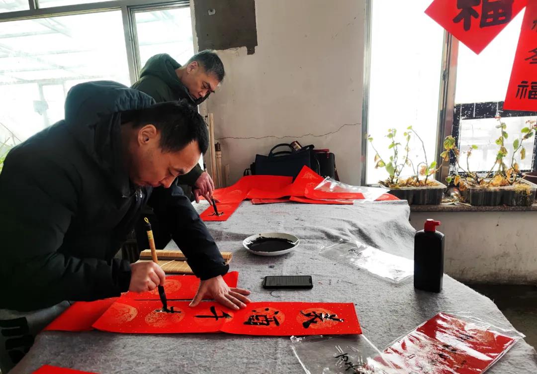 1月15日,文化惠农志愿服务书法家小分队在漂河镇四道沟村为村民现场写春联送福字